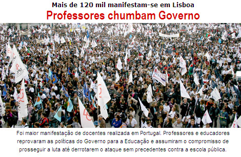 A quase totalidade da classe docente participou na maior manifestação de professores de sempre, em Portugal, sábado, em Lisboa. Repudiou as políticas do Governo para a Educação e garantiu que prosseguirá a luta até derrotar o actual «ataque sem precedentes» aos seus direitos e à escola pública.
