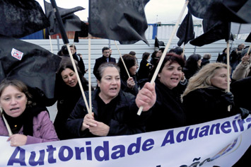 Depois da greve geral, os trabalhadores das alfândegas prolongaram  a sua paralisação por mais dois dias e desfilaram em defesa dos postos de trabalho, dia 26, com bandeiras negras, em Lisboa, até ao Ministério das Finanças.