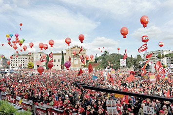 No final de uma semana marcada por intensos protestos estudantis, cerca de 200 mil pessoas participaram, dia 27, em Roma, na manifestação nacional convocada pela CGIL, a maior central sindical de Itália.
