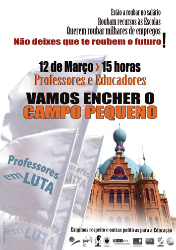 A plataforma sindical dos professores apelou a uma grande iniciativa de protesto, no dia 12, colocando como objectivo encher o Campo Pequeno e daqui para a rua, em direcção ao ME.