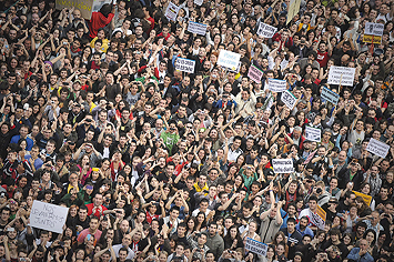 Desafiando a proibição e resistindo à intervenção repressiva das autoridades, os jovens do movimento «15-M/Democracia Real, Já» decidiram continuar o acampamento na Porta do Sol, em Madrid, instalado há quase três semanas.