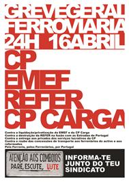 Esta greve faz parte de um plano de iniciativas aprovado a 6 de Março, numa reunião de representantes das comissões de trabalhadores da CP, da CP Carga, da EMEF e da Refer, da Comissão Central de Reformados Ferroviários, do SNTSF (sindicato da Fectrans/CGTP-IN) e de mais onze estruturas sindicais: Sinafe, Sindefer, Siofa, SMAQ, SNAQ, Fenstie/Sinttie, SFRCI, Aprofer, Fentcop, SINFB e STF.