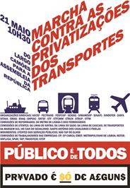Mais de três dezenas de organizações representativas de trabalhadores e de utentes apelam à realização de uma marcha contra as privatizações de empresas de transportes, no dia 21, em Lisboa.