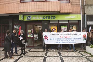 À mesma hora, também no Porto, um número semelhante de trabalhadores concentrou-se frente ao Minipreço, na Rua 5 de Outubro, destacando-se neste caso a acusação de que o grupo espanhol DIA assedia funcionários, procurando levar a que rescindam contratos, para facilitar a estratégia de franquiar lojas, com o objectivo de baixar salários e retirar direitos, a fim de aumentar os lucros.