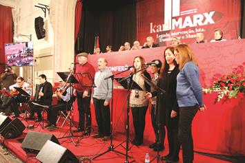 MARXISMO-LENINISMO A conferência do PCP comemorativa do II centenário do nascimento de Karl Marx, realizada no sábado e domingo no salão da Voz do Operário, em Lisboa, constituiu um momento alto de reflexão sobre o mundo contemporâneo e os caminhos para a sua transformação.