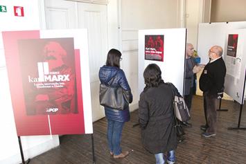 A banca de livros que se encontrava junto à entrada da conferência, com muitos títulos de Marx, Engels e Lénine e sobre o marxismo-leninismo, e a exposição patente no patamar do andar inferior relativa a este II centenário também suscitaram vivo interesse por parte dos participantes.