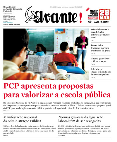 PCP apresenta propostas para valorizar a escola pública Do Encontro Nacional do PCP sobre a Educação em Portugal, realizado em Lisboa no sábado, 17, e que reuniu mais de 250 pessoas, saíram propostas para defender e valorizar a escola pública. O debate centrou-se a proposta geral do PCP para a educação: «A escola pública, gratuita e de qualidade, pilar do desenvolvimento». PCP apresenta propostas para valorizar a escola pública Do Encontro Nacional do PCP sobre a Educação em Portugal, realizado em Lisboa no sábado, 17, e que reuniu mais de 250 pessoas, saíram propostas para defender e valorizar a escola pública. O debate centrou-se a proposta geral do PCP para a educação: «A escola pública, gratuita e de qualidade, pilar do desenvolvimento».