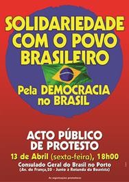 A cidade do Porto vai ser palco, amanhã, 13, de um acto público, às 18 horas, por democracia no Brasil e em solidariedade com o seu povo.
