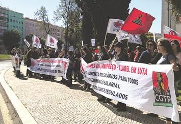 Nesta concentração esteve com os trabalhadores em luta (mulheres, na grande maioria) a deputada comunista Rita Rato.
