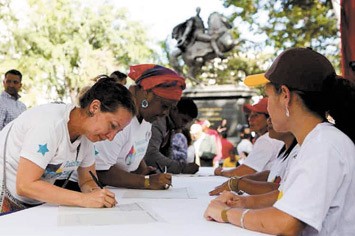 CAMPANHA Na Venezuela, a campanha contra o ilegal bloqueio económico, financeiro e comercial imposto pelos EUA continua com a recolha de assinaturas, as mobilizações populares e outras acções de agitação.