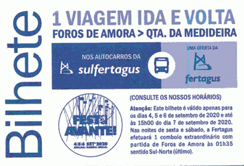 Quem se quiser deslocar para a Festa do «Avante!» de transportes públicos, tem disponíveis para levantamento nos centros de trabalho do PCP bilhetes ida e volta para os autocarros da sulfertagus que fazem a ligação entre a estação de comboios de Foros da Amora e a Quinta da Medideira. Os títulos são válidos entre sexta-feira 4, e segunda-feira 7, até às 15h00.